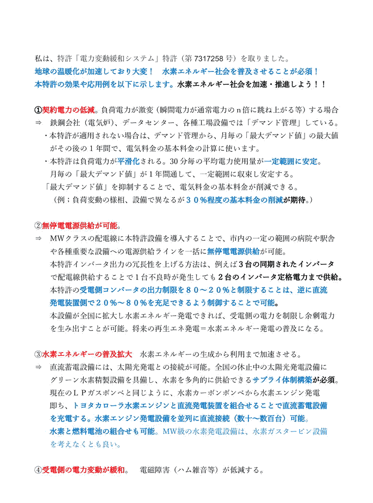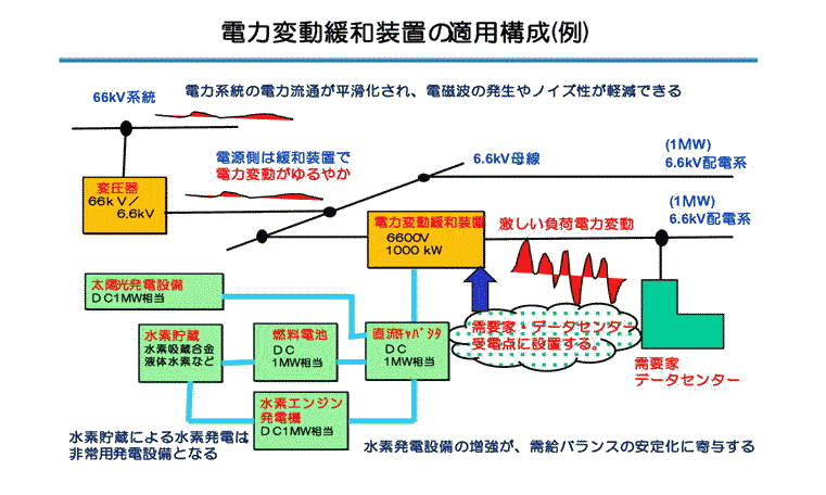| 【発明の名称】電力変動緩和システム 【国際特許分類】 H02J 3/32 (2006.01) H02J 1/00 (2006.01) 【FI】 H02J 3/32 H02J 1/00 306L 【特許権者】 【識別番号】523108522 【氏名又は名称】湯谷 浩次 【住所又は居所】山梨県大月市猿橋町藤崎294-4 【代理人】 【識別番号】110002871 【氏名又は名称】弁理士法人坂本国際特許商標事務所 【発明者】 【氏名】湯谷 浩次 【住所又は居所】山梨県大月市猿橋町藤崎294-4 【要約】 【課題】交流負荷の急変などに起因する電力系統の定格電力を超える電力変動を制御遅れなく抑制する。 【解決手段】交流電源部10に接続されて交流/直流変換を行う複数の第1コンバータ45と、複数の直流中間コンデンサ65と、複数の第1コンバータ45のそれぞれに直流中間コンデンサ65を介して接続されて直流/交流変換を行い交流負荷70に給電する複数のインバータ46と、交流電源部10に接続されて交流/直流変換を行う第2コンバータ34の直流出力電力により充電可能な蓄電装置63と、複数の直流中間コンデンサ65のそれぞれと蓄電装置63との間に接続されて直流電力変換を行う一のDC/DCコンバータ51と、を備え、DC/DCコンバータ51は、絶縁型の双方向DC/DCコンバータであり、交流負荷70の変動に伴うインバータ46の出力変動時に、DC/DCコンバータ51を起動して得た直流電力を補償電力として供給する。 【選択図】図1 ![]() ![]() ![]() 【特許請求の範囲】 【請求項1】 交流電源に接続されて交流/直流変換を行う複数の第1コンバータと、 複数の前記第1コンバータのそれぞれに対応して設けられる複数の直流中間コンデンサと、 複数の前記第1コンバータのそれぞれに前記直流中間コンデンサを介して接続されて直流/交流変換を行い交流負荷に給電する複数のインバータと、 前記交流電源に接続されて交流/直流変換を行う第2コンバータと、 前記第2コンバータの直流出力電力により充電可能な蓄電装置と、 複数の前記直流中間コンデンサのそれぞれと前記蓄電装置との間に接続されて直流電力変換を行う一のDC/DCコンバータと、を備え、 前記DC/DCコンバータは、絶縁型の双方向DC/DCコンバータであり、 前記交流負荷の変動に伴う前記インバータの出力変動時に、前記DC/DCコンバータを起動して得た直流電力を複数の前記直流中間コンデンサのそれぞれに補償電力として供給する、 ことを特徴とする電力変動緩和システム。 【請求項2】 前記第1コンバータの直流出力電力と前記補償電力との和が、前記交流負荷によって要求されている交流電力に等しくなるように前記DC/DCコンバータを制御する直流電力補償制御装置を備えた、 ことを特徴とする請求項1に記載の電力変動緩和システム。 【請求項3】 前記DC/DCコンバータを起動するタイミングを、前記第1コンバータの入力電力又は前記インバータの出力電力に基づいて決定する、 ことを特徴とする請求項1に記載の電力変動緩和システム。 【請求項4】 前記DC/DCコンバータは直流電力を双方向に変換可能であり、前記DC/DCコンバータの直流出力電力により、前記蓄電装置を充電可能である、 ことを特徴とする請求項1に記載の電力変動緩和システム。 【請求項5】 複数の前記交流負荷が同時に電力変動を生じたときに、前記第1コンバータは出力を定格電力よりも低い電力に制限する、 ことを特徴とする請求項1に記載の電力変動緩和システム。 【請求項6】 前記蓄電装置がキャパシタ又は電解コンデンサである、 ことを特徴とする請求項1に記載の電力変動緩和システム。 【発明の詳細な説明】 【技術分野】 【0001】 本発明は、電力変動緩和システムに関する。 【背景技術】 【0002】 電力の変動を緩和して交流電力系統を安定化させる従来の技術として、制御に応じて充電あるいは放電を行うことにより、電力系統の電力の変動を抑制する蓄電装置と、蓄電装置よりも制御に対する充放電の応答が速く、制御に応じて充電あるいは放電を行うことにより、電力系統の電力の変動を抑制するキャパシタ装置と、蓄電装置の充電又は放電が発生する回数を少なく抑えるように、蓄電装置及びキャパシタ装置を制御する制御装置と、を有する系統安定化システムが知られている(特許文献1参照)。 【先行技術文献】 【特許文献】 【0003】 【特許文献1】 特許第5816288号公報 【発明の概要】 【発明が解決しようとする課題】 【0004】 ところで、例えば負荷が大規模計算機システムであり、様々な計算ジョブが並列的に実行される場合には、急峻かつ複雑な負荷変動が頻繁に発生する。このような場合、SOC(State Of Charge:充電率、蓄電残量)及び電力損失の測定、並びにオフセット量の演算などに多くの時間を必要として制御応答に遅れが生じ、電力系統の電力変動を迅速に抑制・緩和することが難しい、という問題がある。 【0005】 そこで本発明は、1つの側面では、交流負荷の急変などに起因する電力系統の定格電力を超える電力変動を制御遅れなく抑制することが可能な技術を提供することを目的とする。 【課題を解決するための