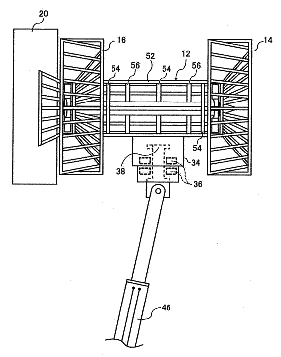 | 【考案の名称】風力発電装置 【実用新案権者】 【識別番号】595000519 【氏名又は名称】清原 貞治 【住所又は居所】神奈川県横浜市金沢区並木一丁目1番3−108号 【代理人】 【識別番号】110000039 【氏名又は名称】特許業務法人アイ・ピー・エス 【考案者】 【氏名】清原 貞治 【住所又は居所】神奈川県横浜市金沢区朝比奈町242 【要約】(修正有) 【課題】 効果的な発電と、強風による破損の防止とを両立することができる風力発電装置を提供する。 【解決手段】 風速が増加し所定の風速以上になると、制御部44は、風速センサの検出値が所定の値未満となる位置まで風胴体12を下降させるよう昇降部42を制御する。さらに風速が増加すると、制御部44は、さらに風胴体12を下降させるよう昇降部42を制御する。一方、風速が減少すると、制御部44は、風胴体12を上昇させるよう昇降部42を制御する。 【実用新案登録請求の範囲】 【請求項1】 風方向に対峙して回転する風車と、 前記風車の回転により発電する発電機と、 前記風車を昇降させる昇降手段と、 を有し、 前記昇降手段は、前記発電機から電力を得て動作する 風力発電装置。 【請求項2】 風方向に対峙して回転する風車と、 前記風車の回転により発電する発電機と、 前記発電機が発電する電気を蓄電する蓄電手段と、 前記風車を昇降させる昇降手段と、 を有し、 前記昇降手段は、前記蓄電手段から電力を得て動作する 風力発電装置。 【請求項3】 風速を検出する風速検出器と、 前記風速検出器の検出結果に基づいて前記昇降手段を制御する制御部と、 をさらに有する請求項1又は2記載の風力発電装置。 【請求項4】 前記制御部は、前記風速検出器が検出する風速が所定の値以上である場合に、前記風車を下降させるように前記昇降手段を制御する請求項3記載の風力発電装置。 【請求項5】 前記制御部は、前記風速検出器が検出する風速が所定の値未満である場合に、前記風車を上昇させるように前記昇降手段を制御する請求項3又は4記載の風力発電装置。 【考案の詳細な説明】 【技術分野】 【0001】 本考案は、風力発電装置に関する。 【背景技術】 【0002】 自然エネルギーを活用する発電方法の一つとして、風により風車が回転することで発電する風力発電がある。しかし、風力発電は天候に左右され、微風のときは、風車の回転が弱く効果的に発電することができない。一方、強風のときは、風車が回転し過ぎることによる破損のおそれがある。このため、強風によって風車が破損することを防止する構成が用いられている。 【0003】 引用文献1では、集風フードの開口部に蓋体を揺動自在に設け、この蓋体は開口部を塞ぐ方向に弾条体で付勢されており、この集風フードに吹き込む風が強力である時は弾条体に抗して蓋体が揺動され開口部から風が逃がされる構成の風力原動機が開示されている。 【0004】 引用文献2では、集風胴の開口部を開閉する蓋板を設け、この蓋板は錐により開口部を閉鎖しているが、一定圧以上になると、錐の重さに抗して蓋体を持ち上げて開口部を開口し風を逃がす構成の風力原動機が開示されている。 【0005】 引用文献3では、筒の内部に4枚の台形板からなる錐体を設け、この各台形板の底辺を筒の前面の各辺に取り付け、所定の風速以上になれば、風圧により台形板が移動して風の抵抗を減らす構成の風力発電装置が開示されている。 【先行技術文献】 【特許文献】 【0006】 【特許文献1】 特開昭59−82584号公報 【特許文献2】 特開昭56−107975号公報 【特許文献3】 特開2004−100672号公報 【考案の概要】 【考案が解決しようとする課題】 【0007】 しかしながら、従来の技術においては、効果的な発電と、強風による破損の防止とを両立することができないという問題があった。 【0008】 本考案は、効果的な発電と、強風による破損の防止とを両立することができる風力発電装置を提供することを目的とする。 【課題を解決するための手段】 【0009】 上記目的を達成するために、本考案の第1の特徴とするところは、風方向に対峙して回転する風車と、前記風車の回転により発電する発電機と、前記風車を昇降させる昇降手段と、を有し、前記昇降手段は、前記発電機から電力を得て動作する風力発電装置にある。これにより、効果的な発電と、強風による破損の防止とを両立することができる。 【0010】 本考案の第2の特徴とするところは、風方向に対峙して回転する風車と、前記風車の回転により発電する発電機と、前記発電機が発電する電気を蓄電する蓄電手段と、前記風車を昇降させる昇降手段と、を有し、前記昇降手段は、前記蓄電手段から電力を得て動作する風力発電装置にある。 【0011】 好適には、風速を検出する風速検出器と、前記風速検出器の検出結果に基づいて前記昇降手段を制御する制御部と、をさらに有する。これにより、本構成を有さない場合と比較して、より効果的な発電と、強風による破損の防止とを両立することがで