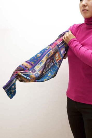 | 【装着図】 | 【衣服着用補助具を兼ねたスカーフ】 | |