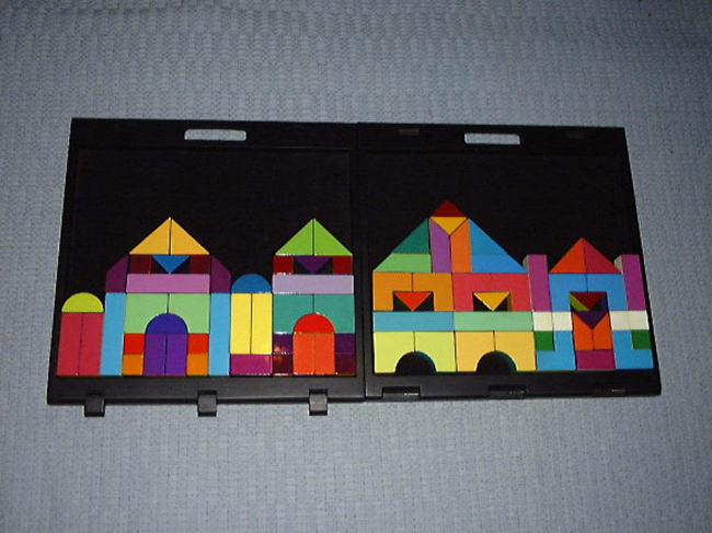 | 【意匠に係る物品】知育玩具 【意匠分類】E2−112 【国際意匠分類(参考)】21−01 【創作者】 【氏名】近藤 栄作 【住所又は居所】長野県北安曇郡美麻村15722 【意匠権者】 【識別番号】303020565 【氏名又は名称】近藤 栄作 【住所又は居所】長野県北安曇郡美麻村15722 【権利譲渡・実施許諾の表示】意匠権者において、実施許諾の用意がある。 【意匠に係る物品の説明】本物品は、正方形のケースに各面ごとに色の異なるブロックを組み込んだものである。ブロックの厚みを一辺とした立方体を最小ブロックとし、その一辺の長さの倍数が各ブロックのいずれかの辺の長さとなっているので組合せが容易である。各ブロックは一定の色相バランスをもった配色となっており、平行する対面は互いに補色の関係にある。(白色は黒色と対応している。)正面図に示された配色は24色環を展開した基本パターンで、中心を基に全ての面が補色関係にある一対のブロック群で構成されている。また、明度は基本色(純色)を最小ブロックに置き、そこから明るい方へ大凡体積比に沿った階層をとっている。(白と黒は例外とする。)ケースは蓋と本体の厚みが同一であり、蝶番に支点が2つあるコマを使用しているので、開くと180度平らになる。横にずらして蓋と本体を外すことができ、土台として使用できるようにスエードで内張りされている。また、キーロック部分は本体に収納されるので突起物がなく安全性が高い。この様な特徴により、積み木のように積んだり、形や模様を考えて並べたり、パズルのようにケースに組込んだりして遊ぶとき、補色対比、色相対比、明度対比を考えた様々なカラーコーディネイトを楽しむことができる。更に、正確なカラーオーダーに基づいていることにより、教材としての要素をもつ知育玩具である。 【意匠の説明】蓋を閉じた外観の背面図及び右側面図は、それぞれ正面図、左側面図と同一にあらわれるため省略する。また全体が黒色であるので図面の彩色を省略する。 |
